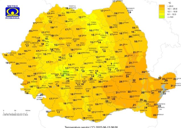 Prognoza METEO pentru data de 13 iunie 2022, temperaturile maxime destul de ridicate dar în unele zone va continua să plouă și să bată vântul în a doua parte a zilei.