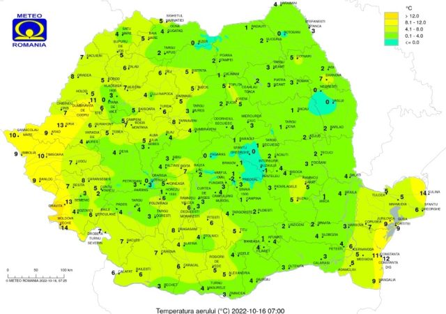 Prognoza meteo pentru duminică, 16 octombrie 2022, potrivit meteorologilor, temperaturile maxime sunt cuprinse între 14 și 22 de grade și minime ce vor varia între 2 și 10 grade Celsius.