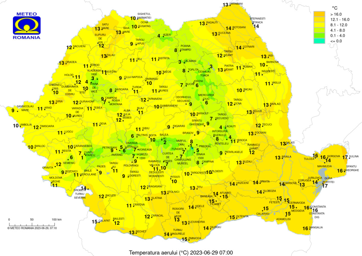 Prognoza meteo pentru joi, 29 iunie 2023,vremea va aduce temperaturi mai scăzute decât în zilele trecute. În unele zone sunt așteptate averse și precipitații.
