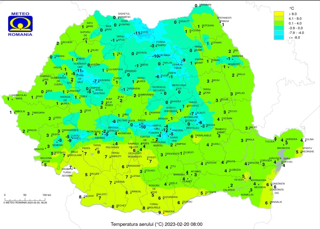 Prognoza meteo pentru luni, 20 februarie 2023, vremea va fi în continuare rece, astfel, temperatura maximă va atinge 10…11 grade, iar cea minimă 3…4 grade.