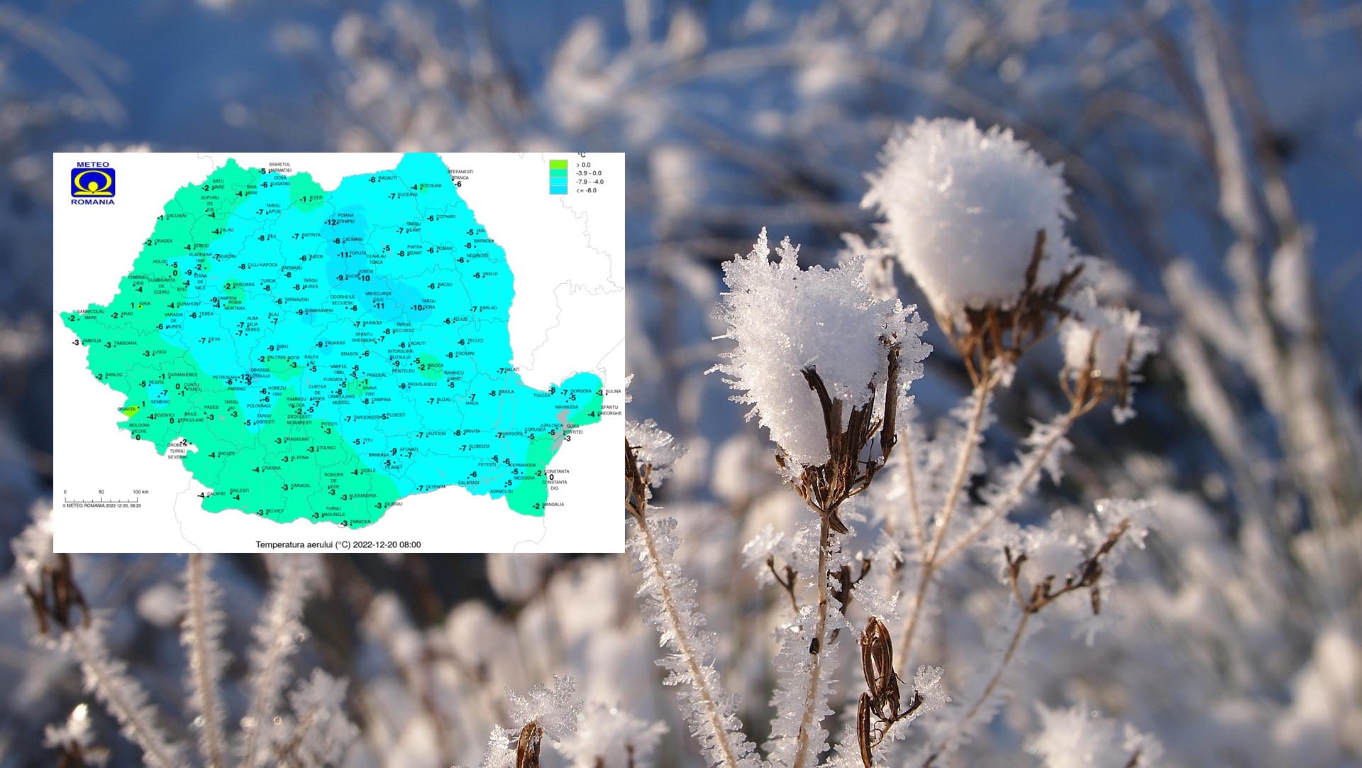 Valorile maxime vor fi cuprinse între 2 și 8 grade Celsius, în timp ce temperaturile minime se vor situa între -10 și -2 grade Celsius. Cel mai frig va fi în zonele intramontane, unde se vor înregistra până la -15 grade Celsius. De altfel, vor exista condiții de ceață pe timpul nopții în sudul României.