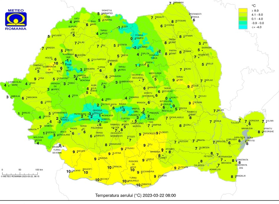 Prognoza meteo pentru miercuri, 22 martie, temperaturile sunt în scădere faţă de ziua precedentă, cu precădere în sud şi sud-est.
