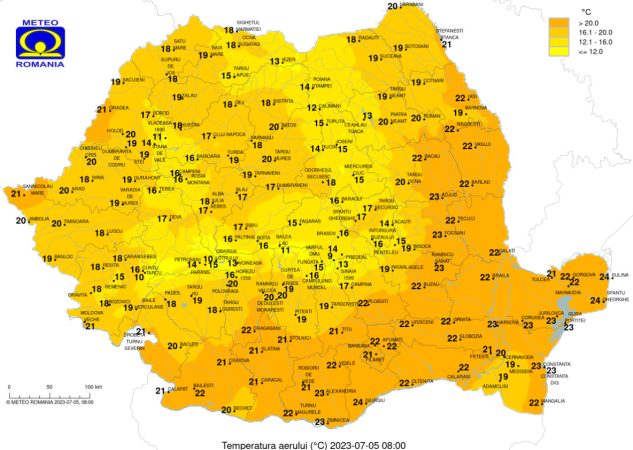 Prognoza meteo pentru miercuri, 5 iulie 2023, vremease va manifesta prin ploi cu caracter torențial, descărcări electrice și intensificări ale vântului sau vijelii în cel de-al doilea interval al zilei.