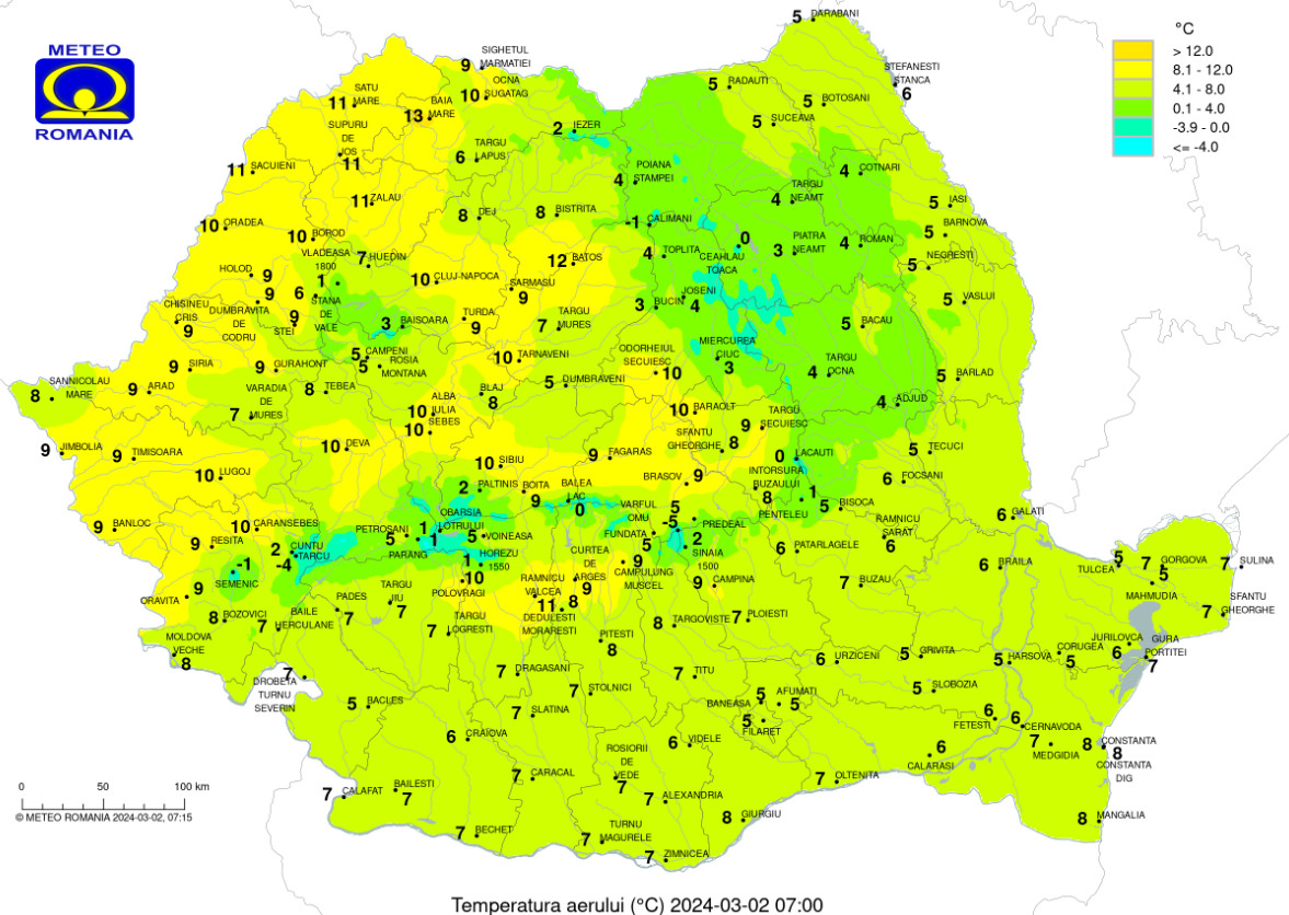 Temperatura maximă va fi de 13 grade, iar cea minimă de 2…4 grade.