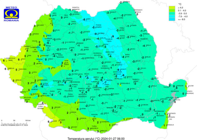 Intensificări ale vântului vor mai fi și pe parcursul nopții de sâmbătă spre duminică (27/28 ianuarie) în Carpații Meridionali și de Curbură, cu viteze de 60…80 km/h.