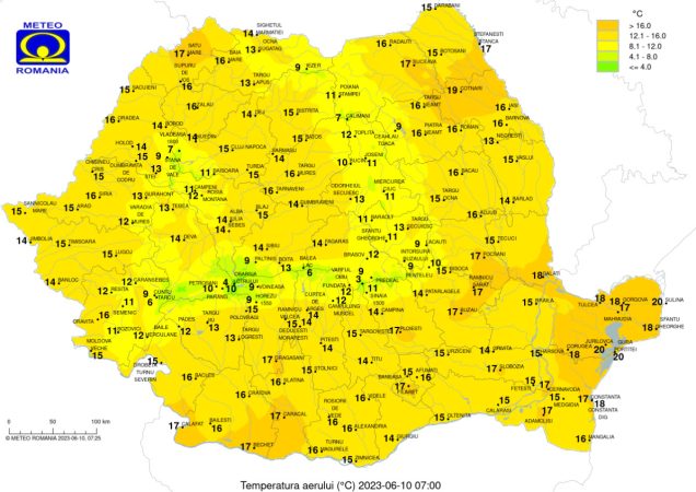 Prognoza meteo pentru sâmbătă, vreme caldă dar instabilă,cu înnorări temporar accentuate, averse, descărcări electrice în Banat, Crișana, Maramureș, Transilvania și Oltenia.
