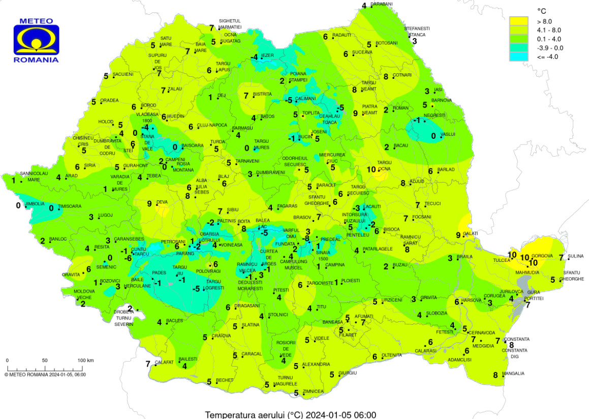 Temperaturile minime, mult mai ridicate decât cele normale pentru aceastã datã, se vor încadra între -2 şi 8 grade. Izolat, în zonele joase de relief, vor fi condiţii de ceaţã.