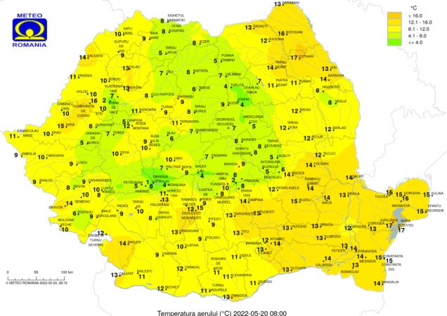 Prognoza meteo, vineri, 20 mai 2022, temperaturile maxime de astăzi se încadrează între 30 și 20 grade, pe când cele minime se vor încadra între 18 și 3 grade.
