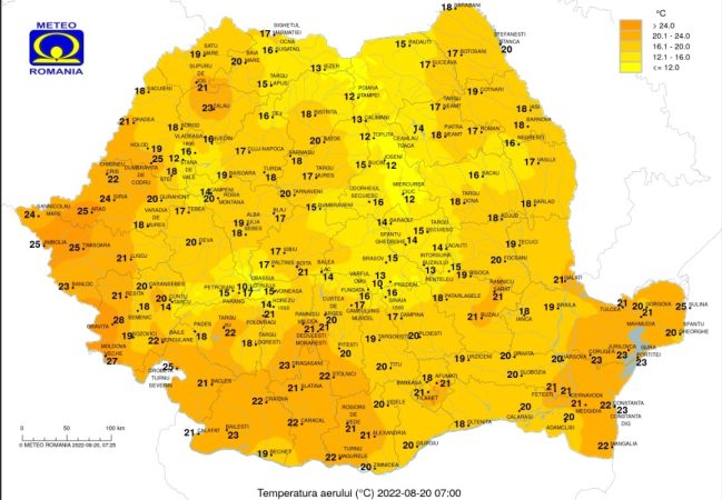 Sâmbătă, 20 august 2022, vreme caniculară dar este valabil un cod galben de furtuni pentru 21 de județe, meteorologii au emis două avertizări.