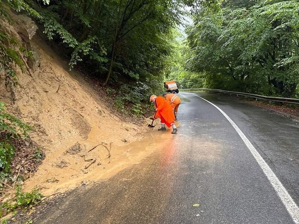 Intervenții pe DN 67D și DN57, pe raza SDN Orșova, pentru asigurarea scurgerii apelor și îndepărtarea aluviunilor de pe partea carosabilă.
