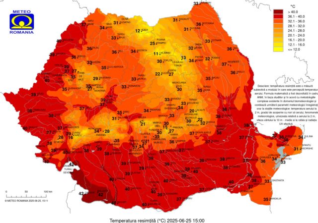Administrația Națională de Meteorologie a emis avertizări de caniculă și disconfort termic accentuat pentru mai multe regiuni ale țării, valabile de miercuri, 26 iunie, ora 10:00, până joi, 27 iunie, ora 10:00.