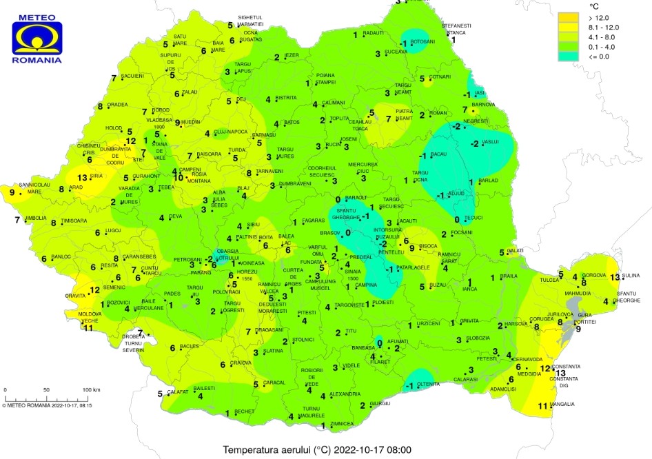 17 octombrie 2022, temperaturile maxime se vor situa între 16 și 23 de grade, iar cele minime vor fi cuprinse în general între 3 și 10 grade.