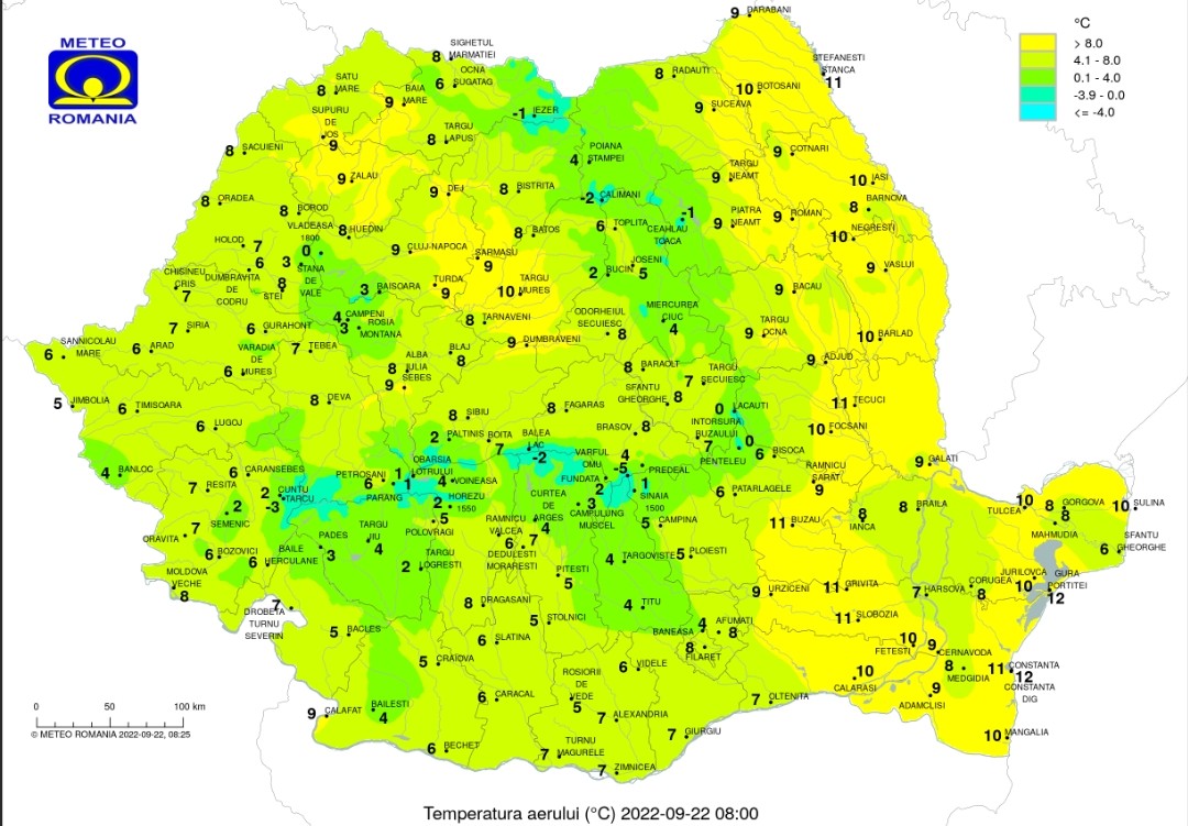 Vremea, 22 septembrie, va fi rece pentru ultima decadã a lunii septembrie în cea mai mare parte a ţãrii.