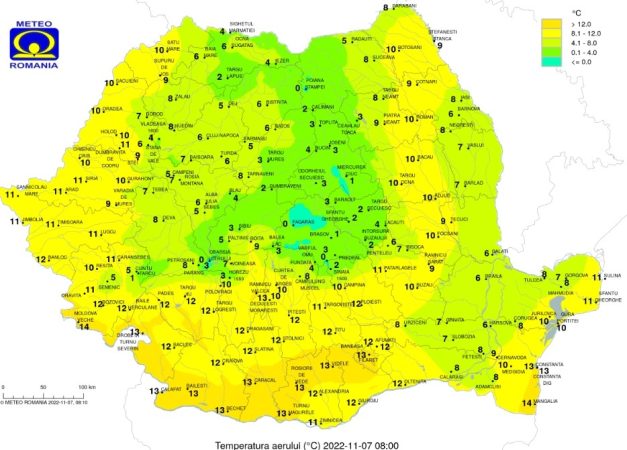 Vremea , 7 noiembrie 2022, temperaturile maxime ajung la 19 grade, cerul va fi variabil în sud-est, dar cu înnorări temporare în celelalte regiuni.