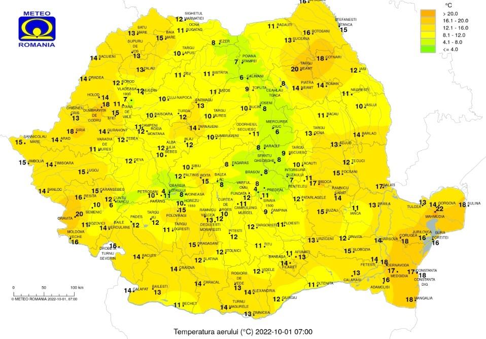 Temperaturile maxime se vor încadra în general între 23 și 31 de grade, iar cele minime vor fi cuprinse între 9-10 grade în depresiuni și 19-20 de grade pe litoral. Izolat se va forma ceaţă.
