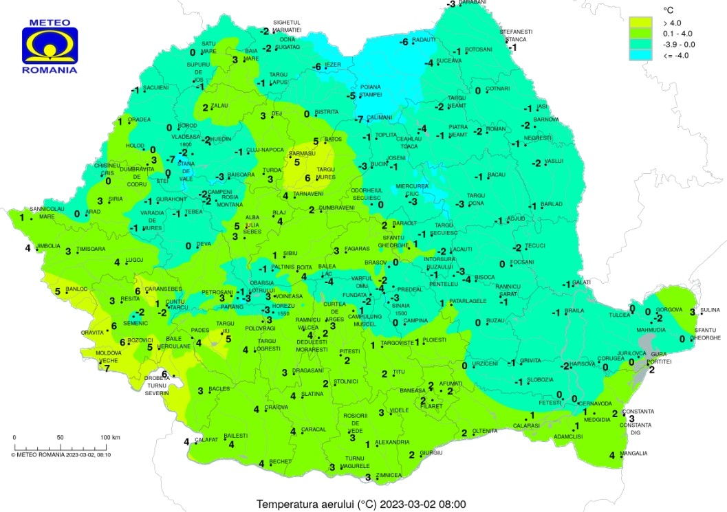 Vântul va sufla slab și moderat, cu ușoare intensificări în sud și în sud-vest. Temperaturile maxime se vor încadra între 3 și 14 grade Celsius, iar cele minime între -7 și 5 grade Celsius. Dimineața și noaptea, pe alocuri, o să fie ceață.