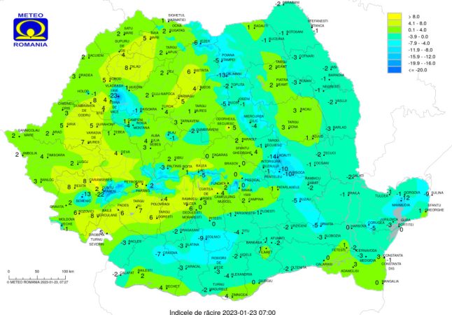 Temperaturile maxime se vor încadra între – 2…0 în regiunile din nordul țării şi 4…6 grade în zona deluroasã din vest; cu o posibilă răcire spre finalul săptămânii viitoare.