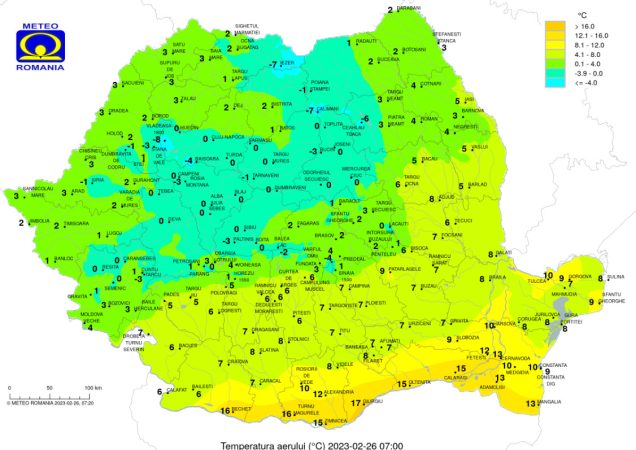 Vremea în toată țara pe 26 februarie 2023, temperaturile vor scădea, astfel că acestea se vor situa chiar sub normele perioadei, în jumătatea de nord a țării.