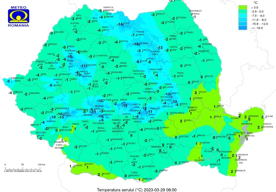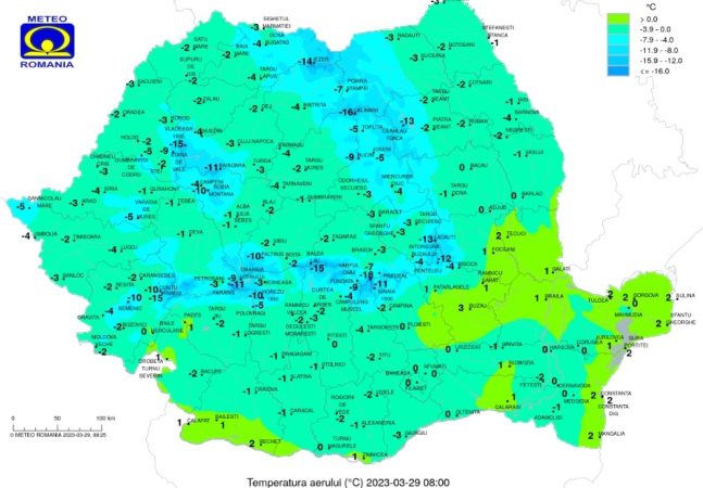 Vremea își continuă tendința de răcire cu minime ce ar putea atinge chiar și -9 grade Celsius.