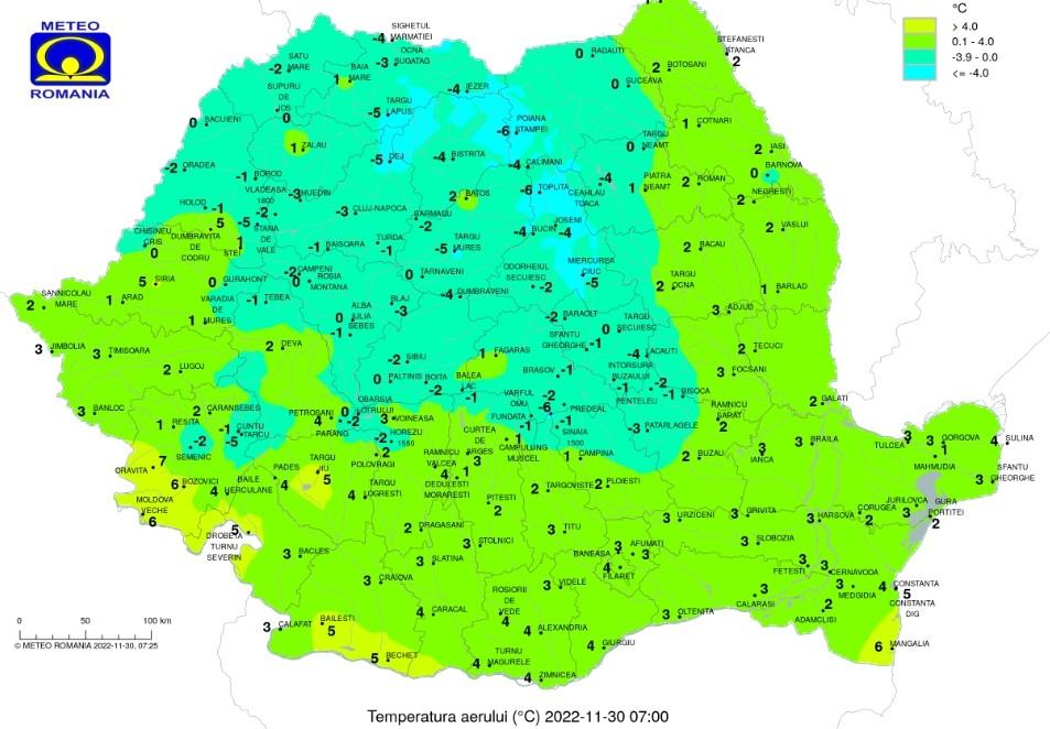 Valorile termice se vor situa în marea lor majoritate în jurul mediilor multianuale; astfel, maximele se vor încadra în general între 0 și 9 grade, iar minimele între -4 grade în nord-vest și 5…6 grade pe litoral și sudul Banatului.