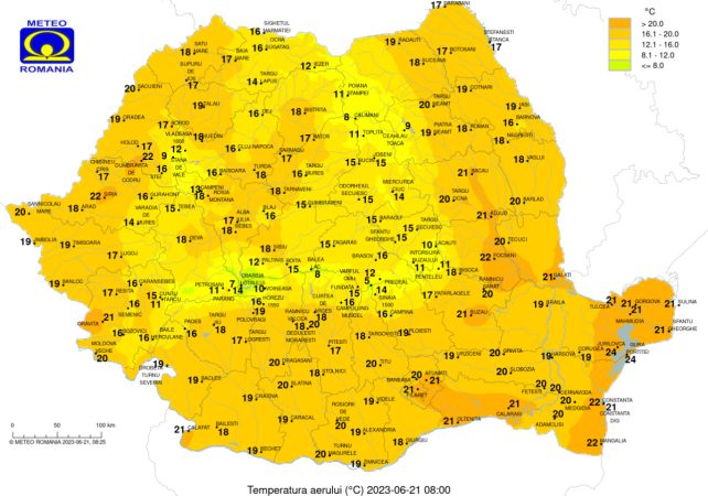 Cerul va fi variabil spre senin, dar va prezenta unele înnorări după-amiaza și seara când pe arii restrânse este posibil să plouă în Dobrogea, la munte și doar izolat în Muntenia, Moldova și Transilvania, iar în a doua parte a nopții posibil în Banat și Crișana.