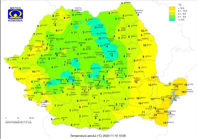 Temperaturile maxime se vor încadra între 10 și 18 grade, iar cele minime vor fi cuprinse între 2 și 14 grade, cu cele mai ridicate valori pe litoral.