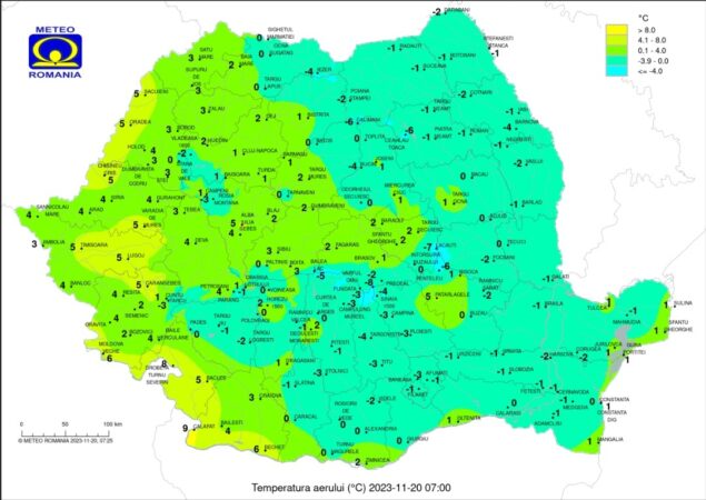 Se vor semnala precipitaţii slabe, sub formă de ninsoare la munte, mixte în Transilvania şi Maramureş şi mai ales ploaie în Crişana. Temperaturile maxime vor fi cuprinse în general între 2 şi 10 grade.
