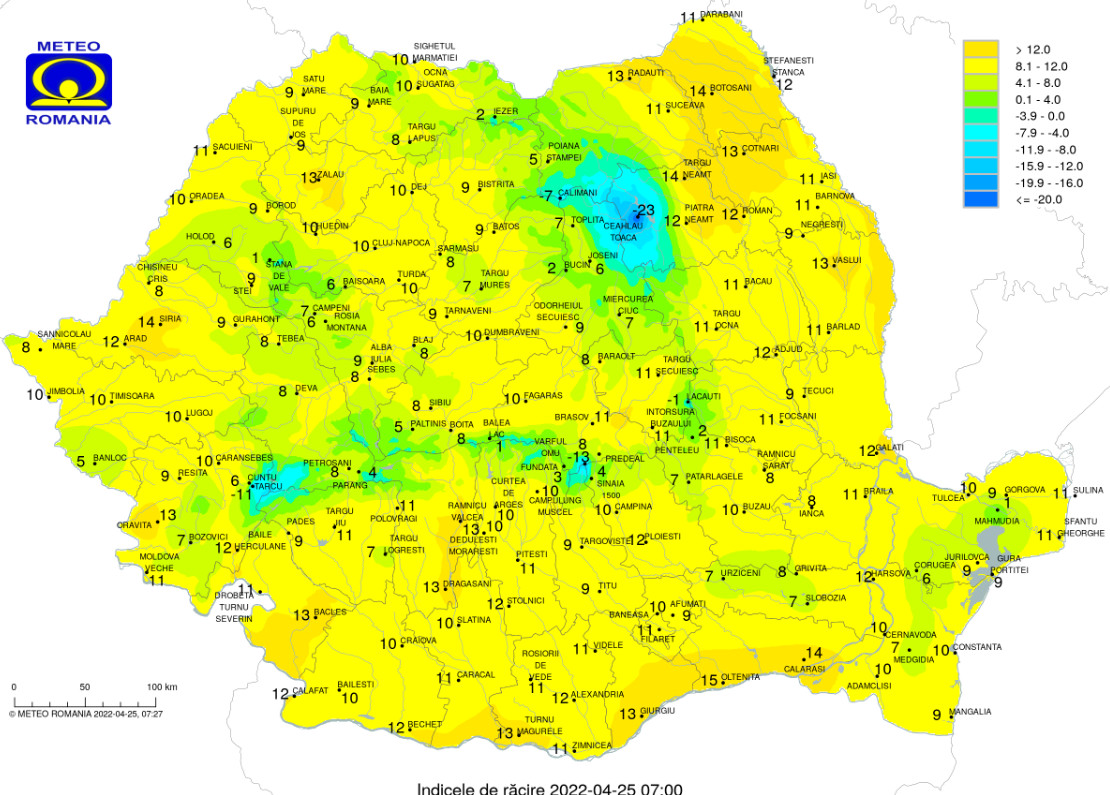 Până la data de 1 mai, vremea se va răci şi media maximelor va coborî spre 16- 17 grade Celsius.