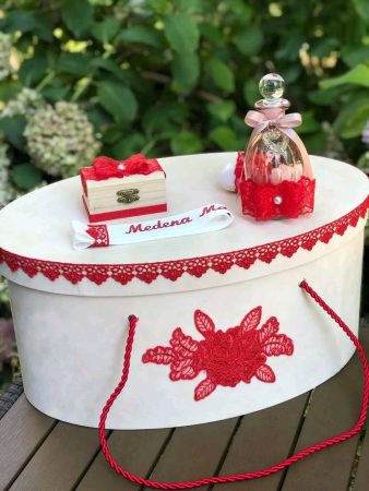 pânză botez sau crișmă, prosop capișon sau prosop mare , prosop preot, fașă, cutiuță prima șuviță, sticluță ulei și săpun preot.