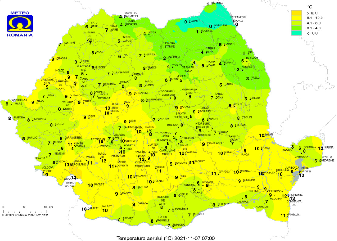 Luni, 8 noiembrie, va fi o ușoară creștere, până la 20 de grade Celsius, însă de marți, 9 noiembrie, o masă de aer mai rece va detemina scăderea regimului de temperaturi până la valori între 7-11-12 grade în partea de vest-sud-vest-sud a țării, chiar 8-9-10 grade în București, a declarat directorul ANM.