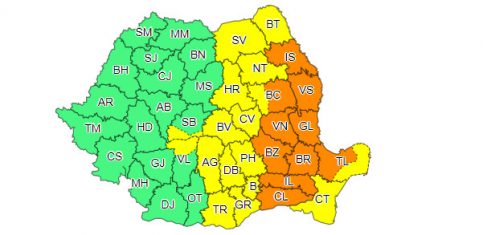 În jumătatea de est a Munteniei, în cea mai mare parte a Moldovei și nordul Dobrogei, instabilitatea atmosferică va fi accentuată, va ploua abundent, se vor semnala descărcări electrice și pe alocuri grindină și vijelii. În intervale scurte de timp sau prin acumulare cantitățile de apă vor depăși local 30…40 l/mp și pe spații mici 50…70 l/mp. Temporar vântul va avea intensificări, cu viteze la rafală în general de 50…60 km/h.