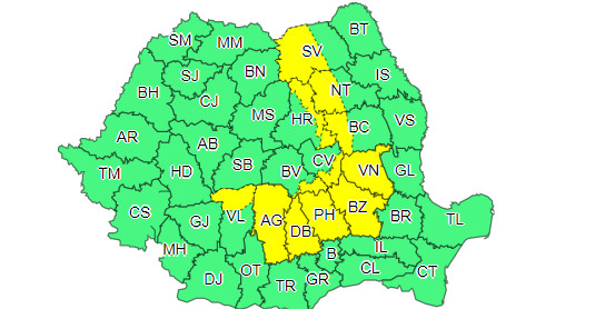 COD GALBEN de VIJELII și în Dâmbovița, luni, potrivit ANMH care a emis două ATENȚIONARE METEOROLOGICĂ, valabilă, 28 iunie, ora 12:00 – 28 iunie, ora 22:00.