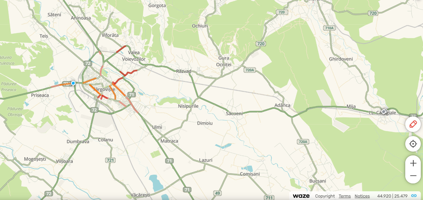 Cum arată traficul în municipiul Târgoviște, pe principalele artere dar și la intrările în oraș. Primele ore ale dimineții sunt caracterizate de un trafic intens în muncipiu. Șoferii trebuie să dea dovadă de responsabilitate și prudență.