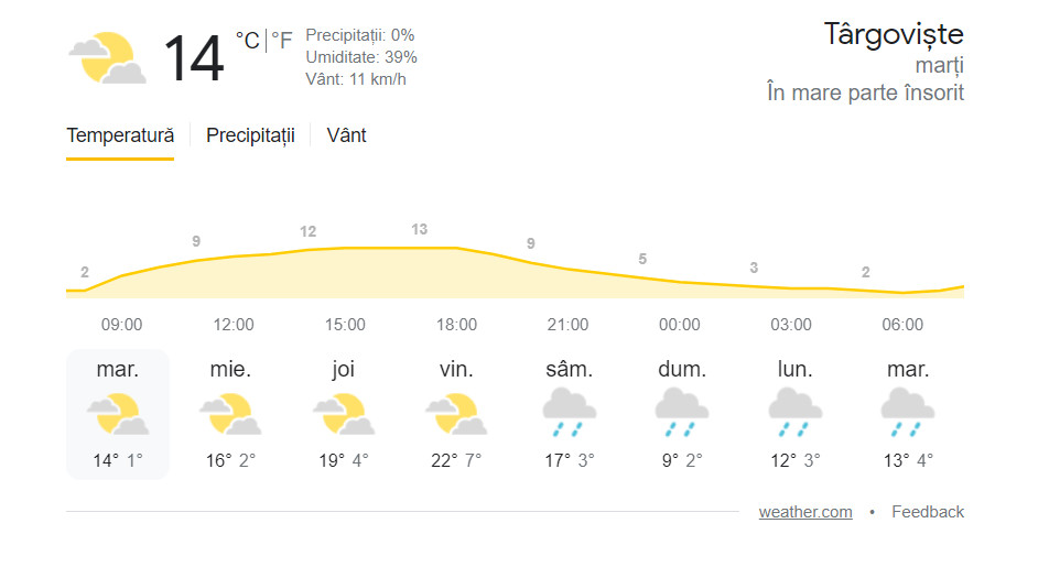 Cum va fi vremea astăzi, 12 aprilie,temperaturile se vor situa între 7 şi 17 grade, izolat mai ridicate în Oltenia până spre 19 grade, iar cele minime, în general, între -5 şi 5 grade.