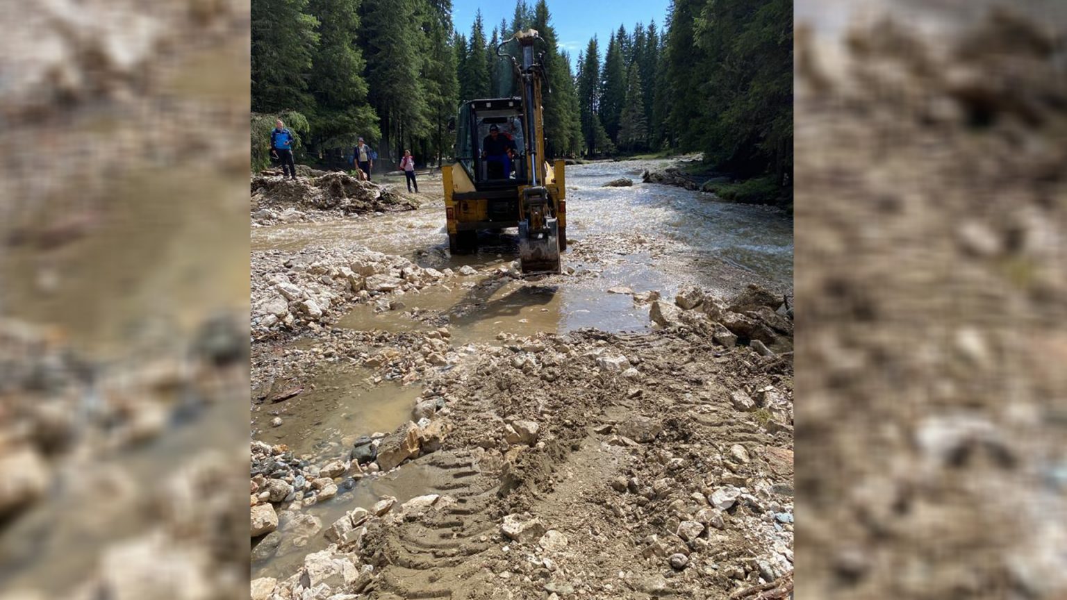 Drumarii de la LDP au intervenit rapid în zona Cabanei Horobele, unde viitura a făcut din nou ravagii și într-un timp foarte scurt s-a realizat o cale de acces pentru turiștii care au reușit să plece în siguranță spre casă.