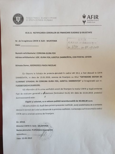 Proiectul de extindere iluminat public Gura Foii – Bumbuia a fost declarat eligibil și urmează să fie implementat în cel mai scurt timp. Toată zona de pădure dintre sate va fi iluminată.