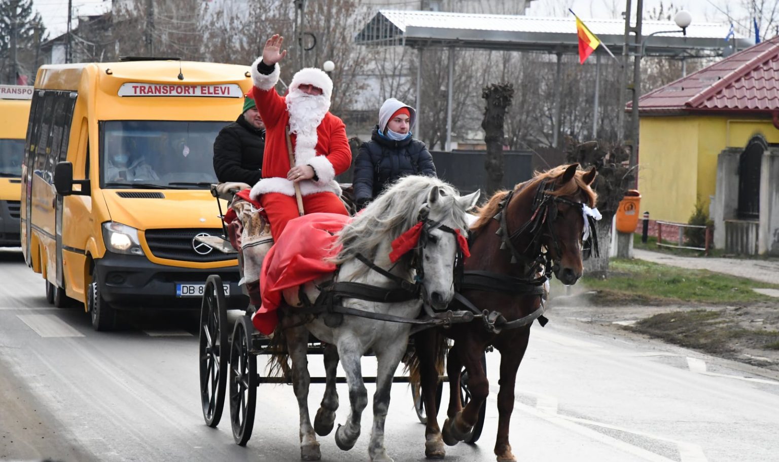 Edilul Marius Carveţeanu, a vorbit din timp cu Moş Crăciun şi l-a convins să treacă şi anul acesta prin oraşul lor. Alaiul de zurgălăi i-a scos din casă şi pe răcărenii cei mai mici iar moşul nu a stat pe gânduri şi s-a oprit să-i salute şi să le lase câte un cadou .
