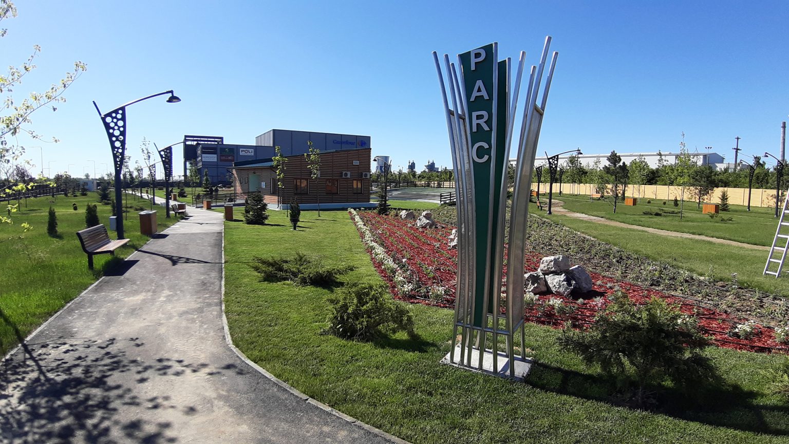 Vorbim de 14.000 mp de spațiu verde, aproximativ 500 de arbori și arbuști din specii rășinoase și foioase, sistem automat de irigații, iluminatul ambiental modern, piațeta și fântâna arteziană, locul de joacă și de fitness, biblioteca în aer liber, aleile pietonale și pistele pentru biciclete.