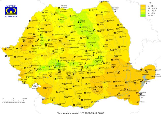 Temperaturile maxime se vor încadra între 20 de grade în Maramureș și 31 de grade în sudul Olteniei și al Munteniei, iar minimele vor fi cuprinse în general între 7 și 15 grade.