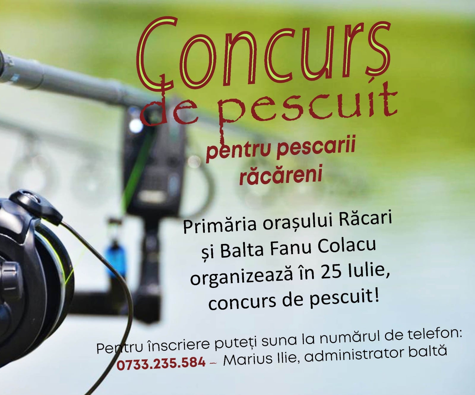 Inscrieri si relatii la: Marius Ilie, administrator balta, telefon 0733.235.584, pana in data de 23 iulie, ora 24.00!