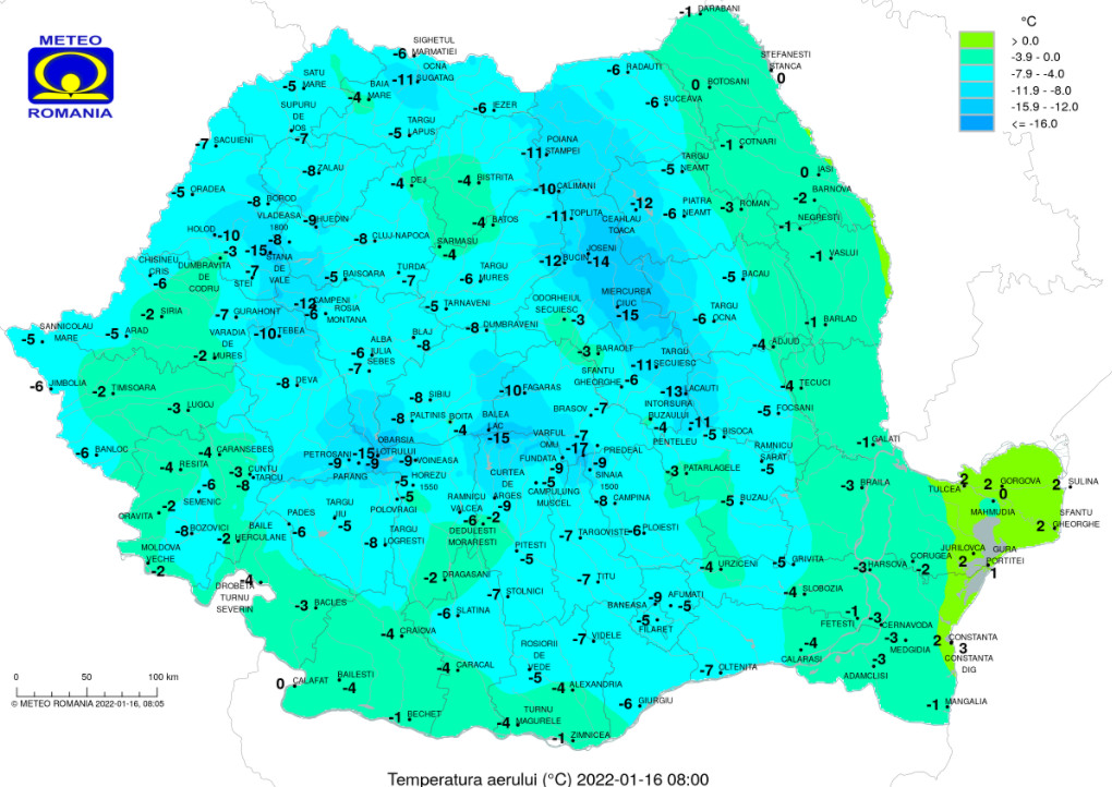 PROGNOZA METEO, 16 ianuarie