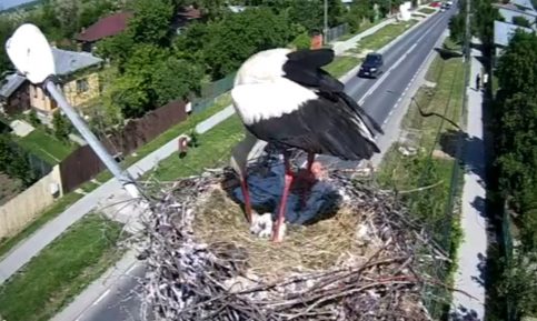 Puii de barză din cuibul de la Răcari, au ieșit duminică de dimineață din ou, evenimentul fiind surprins de camera web care transmite non-stop imagini din cuib.