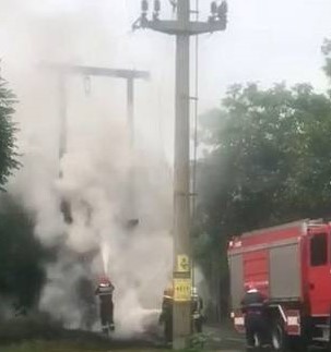 Un transformator electric a luat foc, în comuna Cobia, pompierii intervin la fața locului