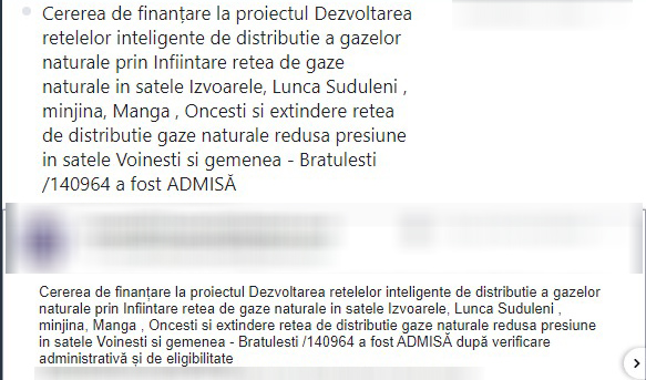 VEȘTE URIAȘĂ pentru VOINEȘTI, O NOUĂ INVESTIȚIE DE 5.000.000 EURO, primarul Gabriel Dănuț Sandu a fost anunțat cu puțin timp în urmă de către Ministerul Fondurilor Europene că a fost ADMISĂ cererea de finanțare pentru proiectul -Dezvoltarea Rețelelor inteligente de distribuție de gaze naturale prin înființare rețea inteligentă de distribuție gaze naturaleîn satele Izvoarele, Lunca Suduleni, Mînjina ,Manga, Oncești și extindere rețea de distribuție gaze naturale redusă presiune în satele Voinești, Gemenea și Brătulești.