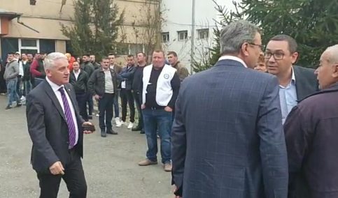 Se poate observa şi pe imagini  cum senatorul Ţuţuianu are o reţinere  în momentul în care oamenii huiduiau , însă Victor Ponta a mers la dânşii.