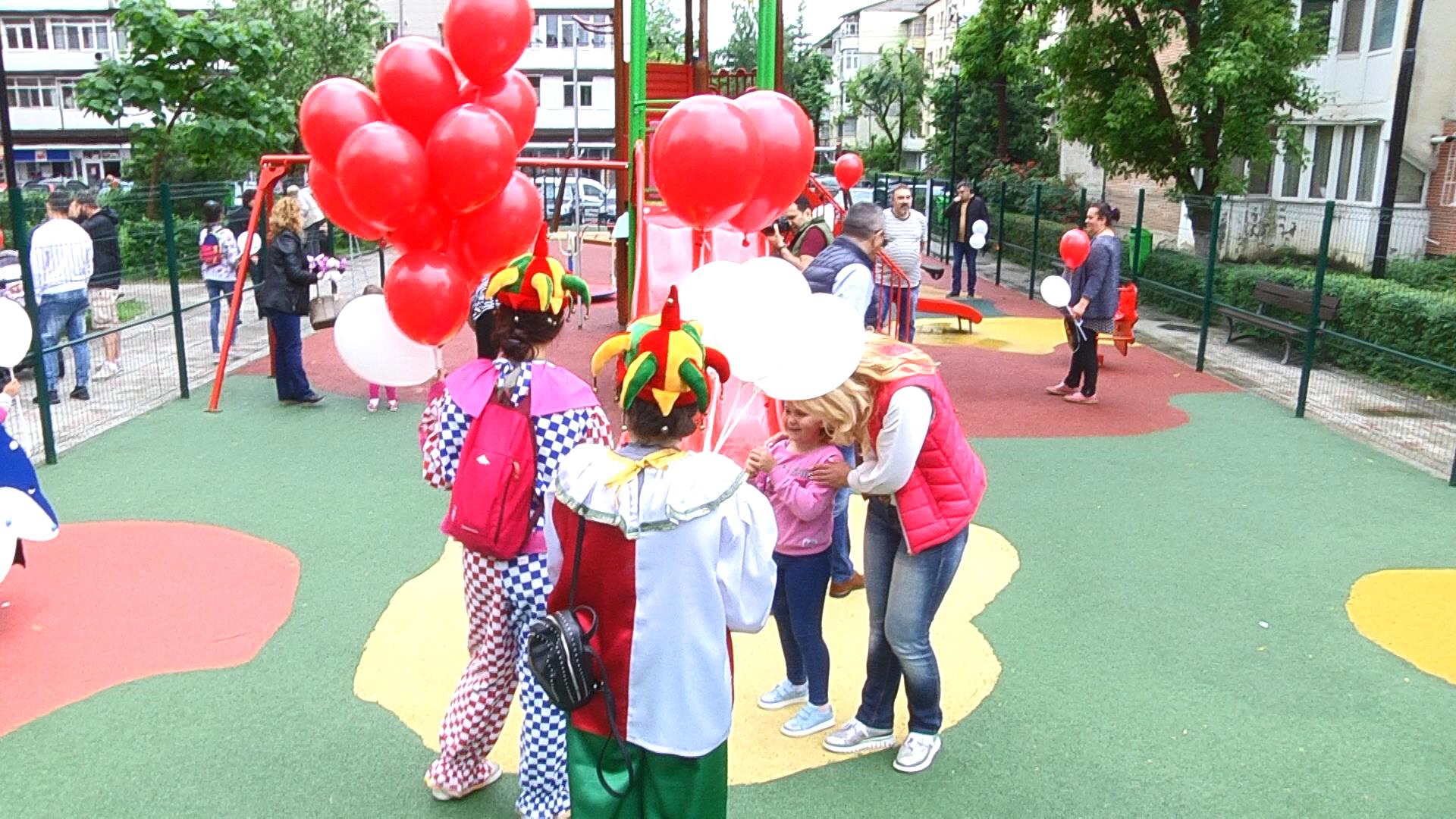 Nu au lipsit clovnii şi baloanele colorate. Copiii și părinții din zonă s-au arătat încântați de noul spațiu de joacă.