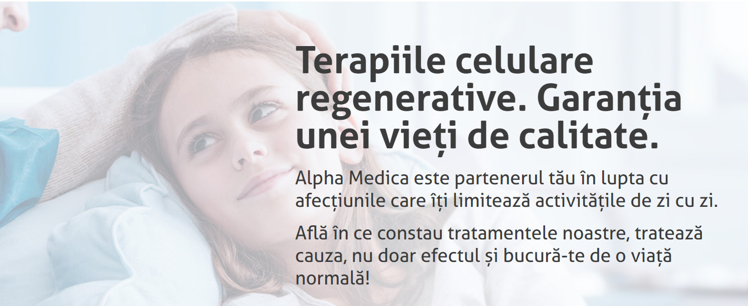 Tratamentele celulare inovatoare, utilizate de clinica Alpha Medica reprezintă promisiunea ameliorării bolilor osteo-articulare, neurologice, pulmonare, cardiovasculare sau autoimune, răspunsul medical corect pe care îl așteptau generații întregi.