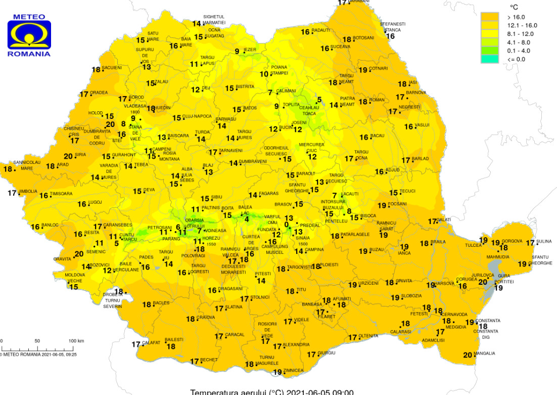 Vremea, astăzi,5 iunie 2021,în prima parte a zilei,soare iar după-amiază și seara, vin averse cu tunete și fulgere și se pot strânge cantități mari de apă.