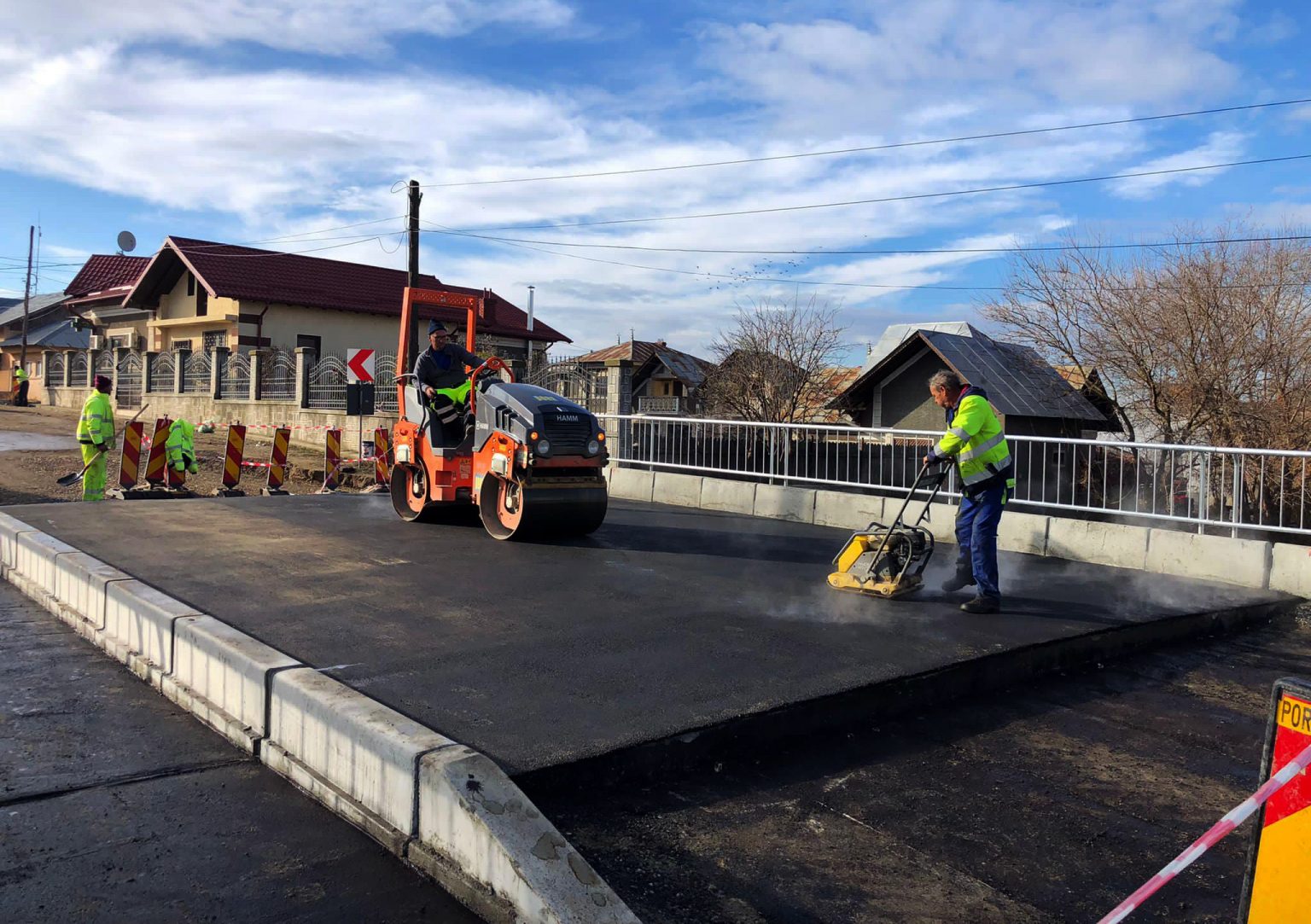În Gura Ocniței se toarnă strat de asfalt și tot în această comună ieri s-au montat cele 10 grinzi ale podului de pe DJ720.