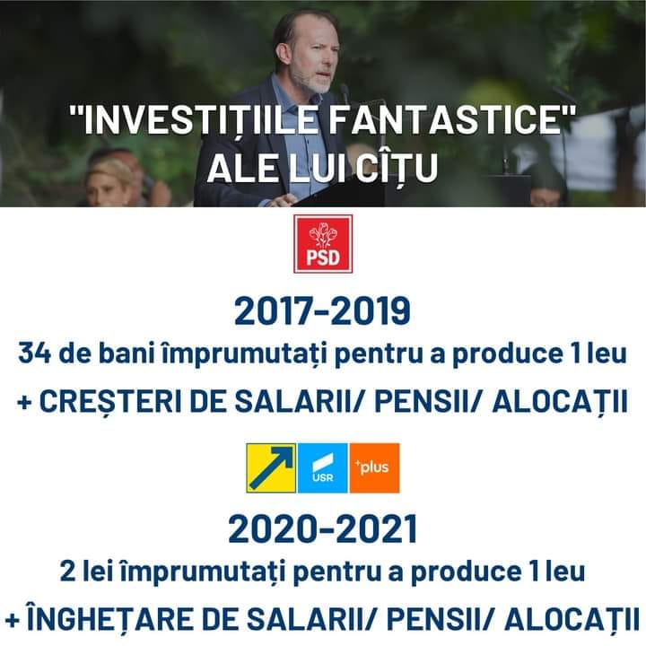 PSD Dâmbovița vorbeste DESPRE MINCIUNA CREȘTERII ECONOMICE „PE INVESTIȚII” spunând că pentru a produce 1 leu, acum în guvernarea PNL-USL ,România se împrumută cu 2,14 lei.